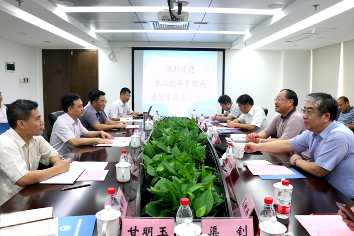 8月9日,长江航务管理局局长、党委书记唐冠军,长江航务管理局党委副书记、长江航道局局长付绪银,长江航务管理局党委副书记、纪委书记曹江洪一行到珠江航务管理局进行工作调研,与珠江航务管理局局长、党组书记王建华就双方交流合作达成多项共识,将进一步促进双方加强合作,共同推进长江和珠江黄金水道建设。