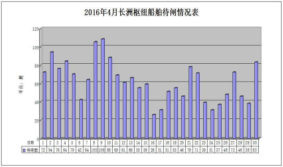 附:1. 2016年4月长洲枢纽船舶待闸情况表