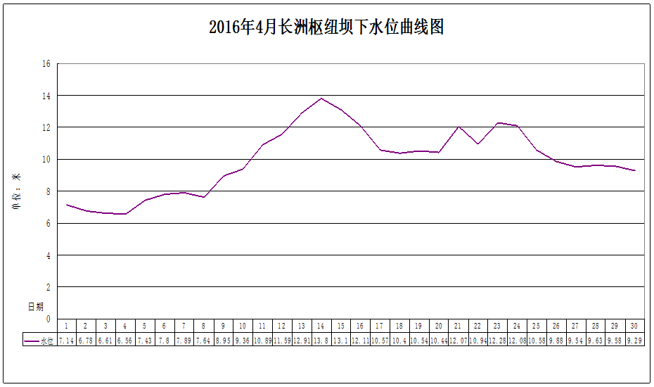 3. 2016年4月长洲枢纽坝下水位曲线图