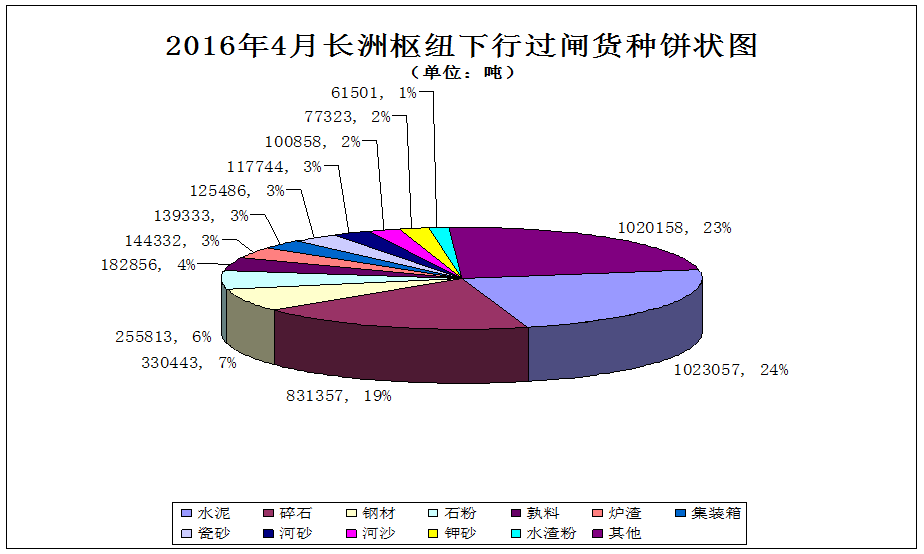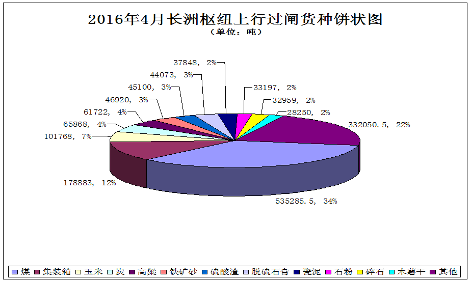 5. 2016年4月长洲枢纽上行过闸货种饼状图