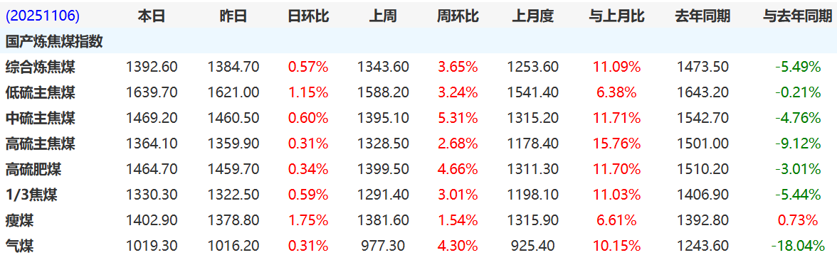 炼焦煤价格延续强势上涨态势,动力煤市场在短暂回调后再度上涨。随着气温下降,冷冬预期推升电煤需求,同时,供给端收缩预期增强,共同对煤价形成上行支撑。