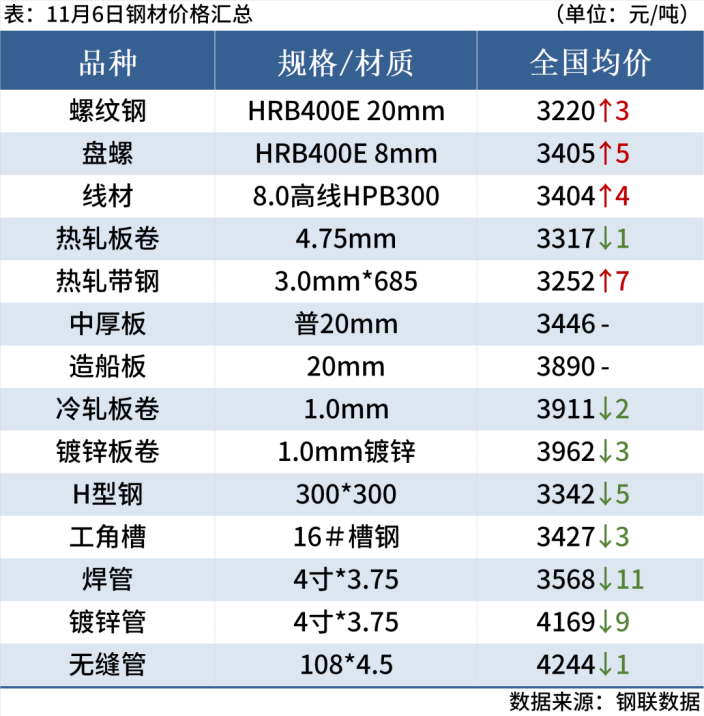 钢材市场呈现供需双弱格局,价格震荡调整,库存去化速度放缓。随着北方天气转冷,终端需求逐步走弱,钢厂与贸易商多以降价出货为主,市场整体承压运行。