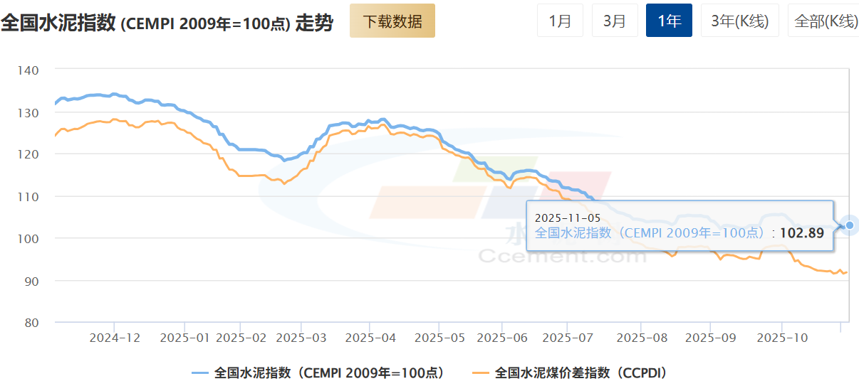 水泥行情以涨为主,全国水泥价格指数(CEMPI)报收102.89点,日环比上涨0.17%,同比下跌21.9%。上周,珠三角主导企业通知上调水泥价格30-50元/吨,但从市场情况来看落实幅度有所收窄。据百年建筑网预测,四季度广州重点工程水泥用量预计同比减少约30%,主要受工地回款困难、施工进度放缓及存量项目收尾、新项目接续不足等因素影响,加之后续大型赛事活动期间施工受限,水泥需求或进一步走弱。