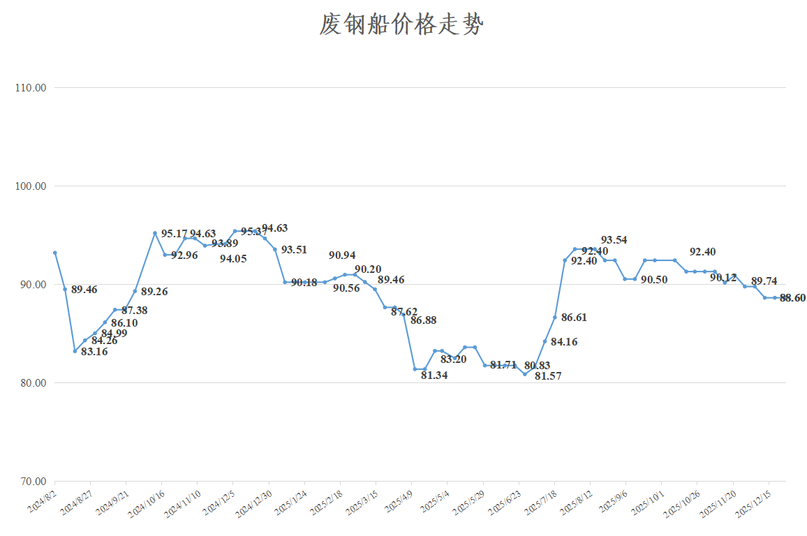 本期废钢船维稳运行,同比下降6.37%。本周黑色期货震荡偏弱,螺纹钢价格偏弱运行。本周钢厂生产积极性尚可,贸易商多以快进快出为主。废钢到货量偏低,流动资源偏紧,形成价格支撑,市场多以观望为主。其中,内河废钢船价走势同比下降6.58%;沿海废钢船价走势同比下降5.76%。