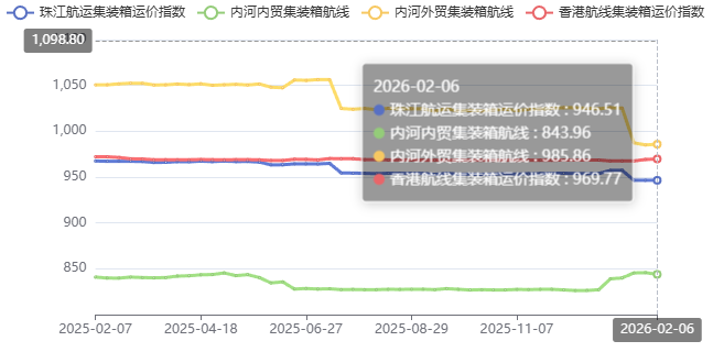 2026年2月6日,广州航运交易所发布的珠江航运集装箱运价指数报收946.51点,较上期下跌0.02点。