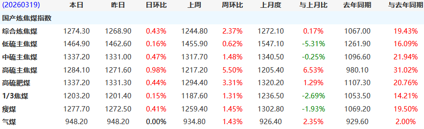 表1 主要煤炭品种价格指数变化
